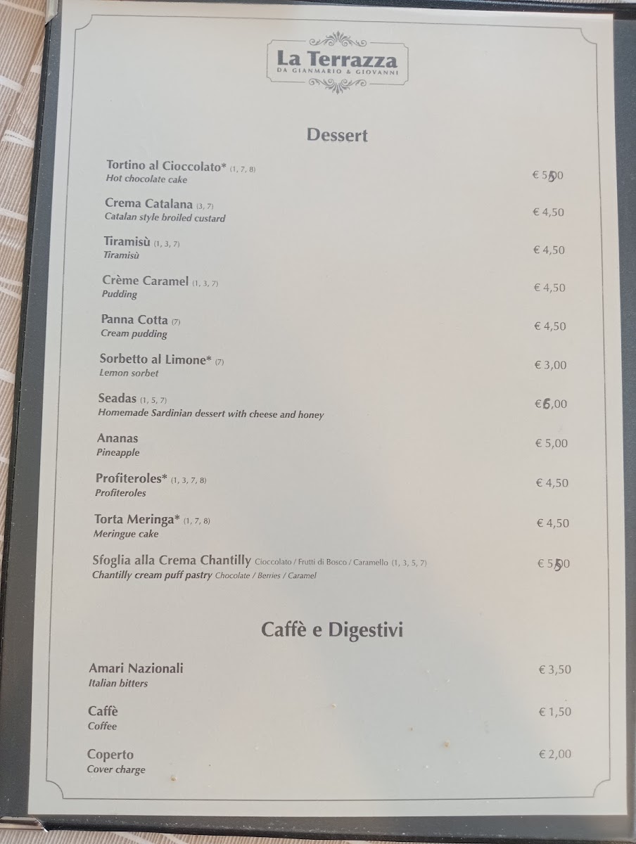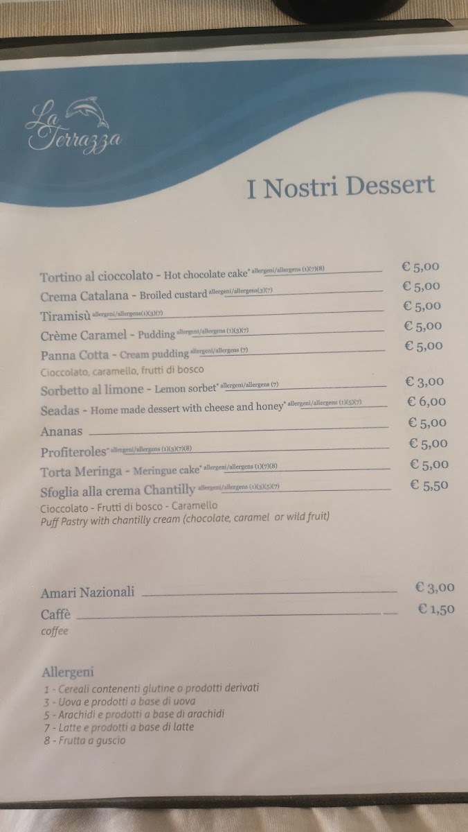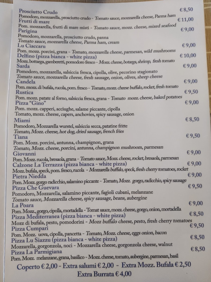 Ristorante La Terrazza Pizzeria Menu